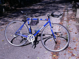 フラットバーロードというやつで、ロード系の部品を使いつつもハンドルがフラットバーという、今考えるとなんと中途半端なやつだろうか…。