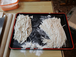 不思議な事にそばは粉の状態ではほとんど香りがせず、練り始めると香りが出てくる。練り始めが一番強烈だ。